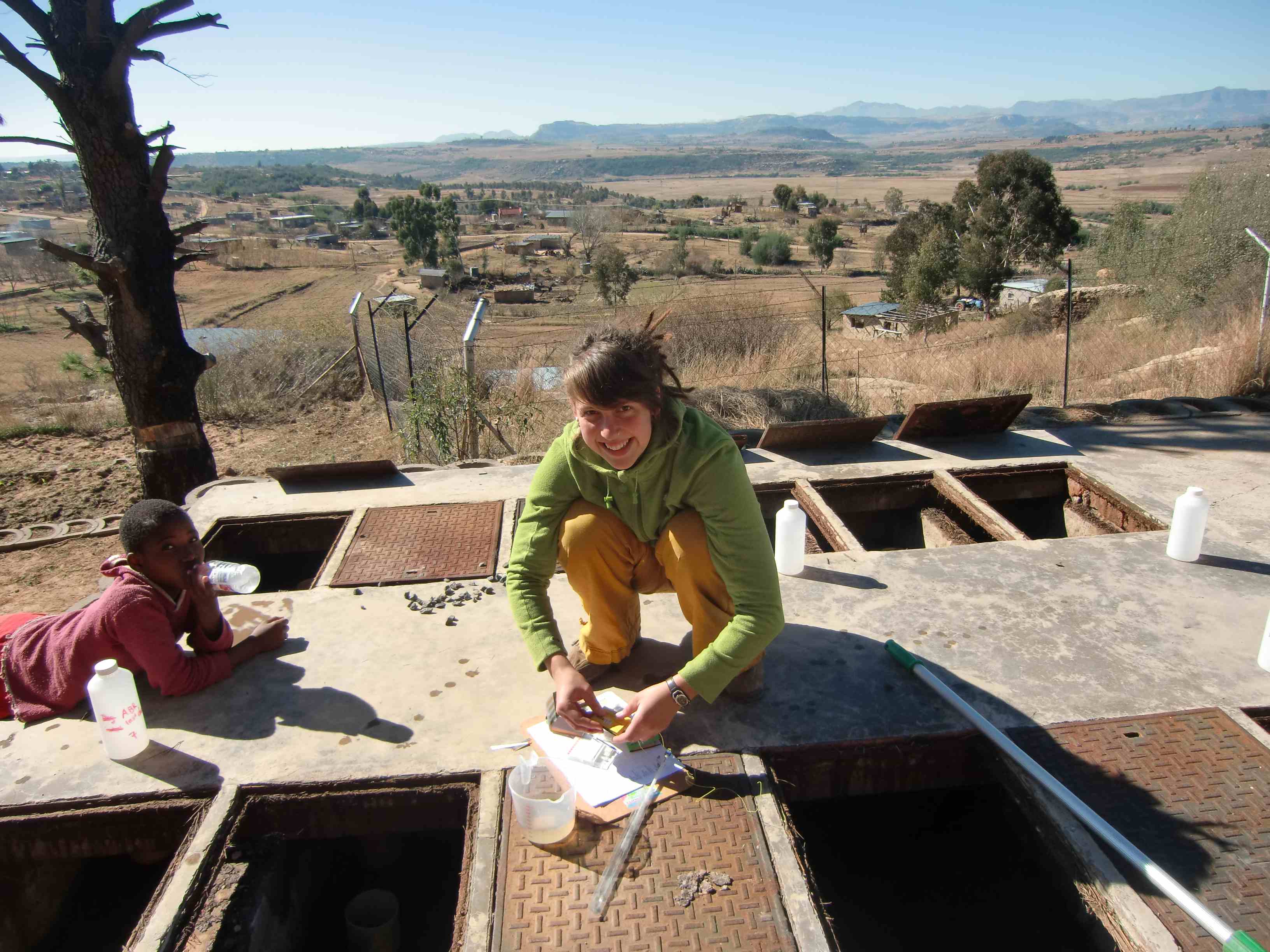 The measurement day, June 2nd 2011, was a sunny day with the highest temperature of 14.8°C and lowest temperature of -3.2°C. There has been no rain since several days. About two weeks ago, a water meter has been installed and the children staying in Children’s Home haven been asked to help with the water meter reading. To get reasonably correct information about the water consumption, the water meter reading was controlled at least every 3 days. Measurement on June 2nd 2011 started at the water tap where pH, temperature and alkalinity were taken, followed by the same measurements at the digester inlet and outlet, the 1st, 3rd and last chamber of the ABR, the last chamber of the anaerobic filter (AF) and the PGF effluent. Further samples to be later analysed in the laboratory were taken at the digester outlet, the 1st, the 3rd and the last chamber of the ABR, the last chamber of the AF and the PGF effluent. The children living at the place accompanied the measurement activities, and their interest was answered with explanations about the processes happening in the system. They helped during the measurements and took photos; maybe one day some of them will work in the field of sanitation and wastewater treatment. After the sample taking the samples were brought immediately to the laboratory in the TED office where the settle able solids and the COD were analysed.